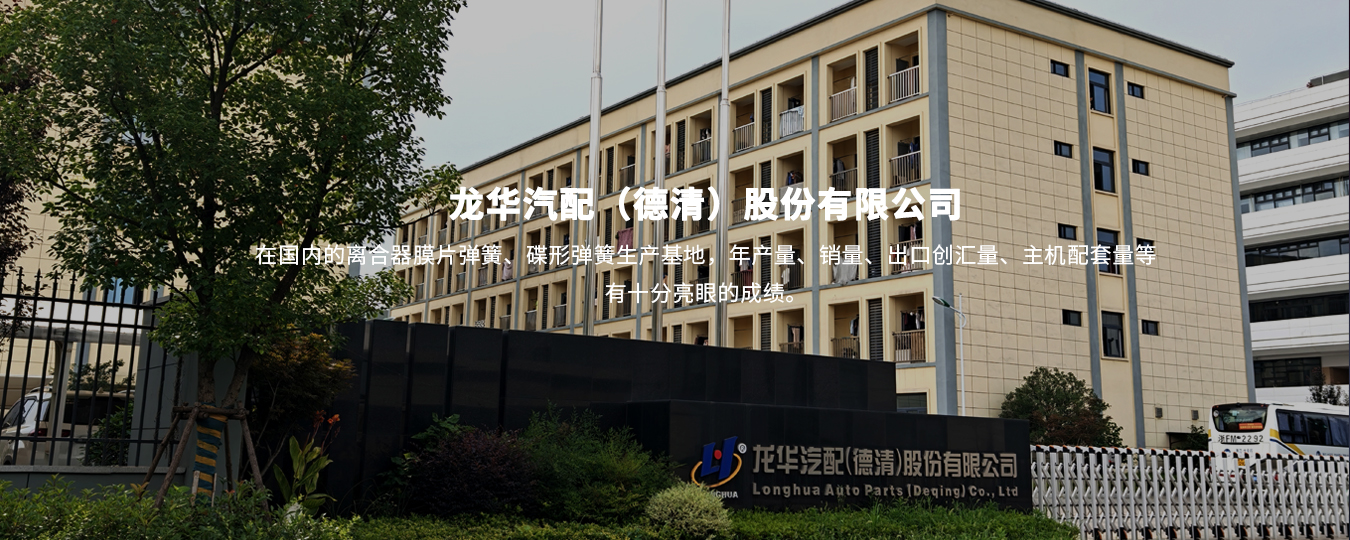 Longhua Auto Parts (Deqing) Co., Ltd. is a high-tech enterprise specializing in diaphragm springs for automobile clutches and disc springs for agricultural machinery and construction machinery. Founded in 1995, the company was formerly known as Yueqing Longhua Auto Parts Manufacturing Co., Ltd. In 2005, moved to Zhejiang Haining Agricultural Development Zone due to development needs, and named Zhejiang Longhua Auto Spare Manufacture Co., Ltd., with an investment of 110 million yuan, requisitioned land of 26,666 square meters, built more than 20,000 square meters of workshops and purchased more than 200 sets of equipment, forming an annual production capacity of 5 million sets of various diaphragm springs........